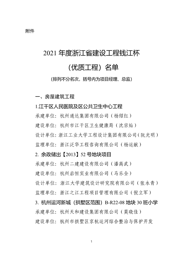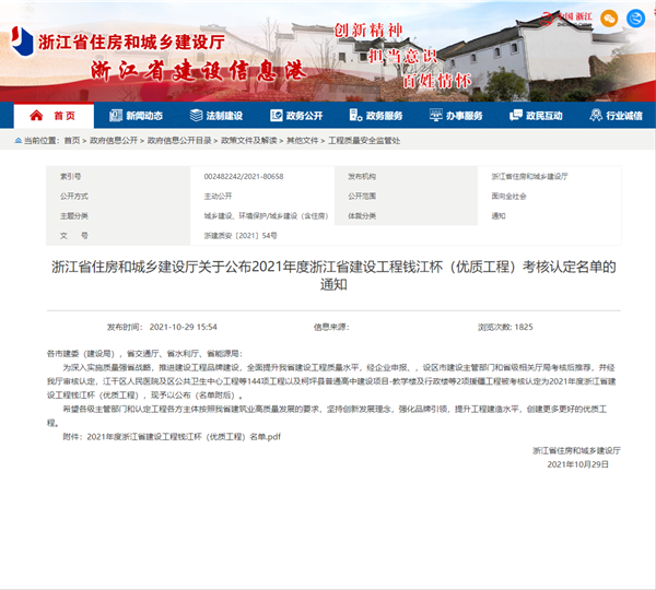 根據(jù)《浙江省住房和城鄉(xiāng)建設廳關于公布2021年度浙江省建設工程錢江杯(優(yōu)質工程)考核認定名單的通知》,我公司承建的景寧畬族自治縣鳳凰學校新建工程、麗水二中校園完整工程2個項目榮獲2021年度浙江省建設工程錢江杯(優(yōu)質工程)。錢江杯(優(yōu)質工程)是浙江省工程建設領域的最高質量獎項,代表了浙江省建筑業(yè)工程質量的最高水平。