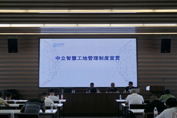 楊曉震對上半年度智慧工地開展情況進行總結(jié)通報,中立智慧工地管理制度進行宣貫,并將流程、主管部門要求及注意事項進行培訓(xùn)。