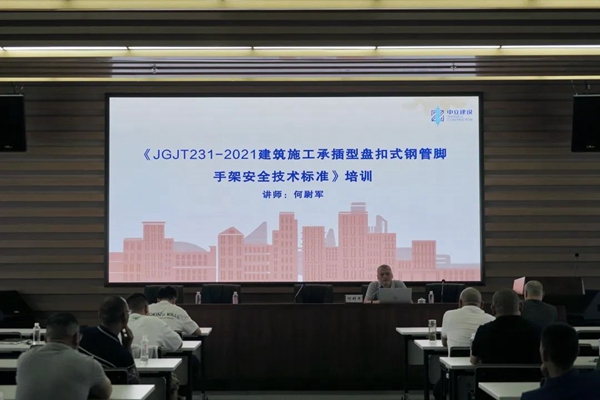 麗水市建筑工程施工管理中心何尉軍同志就《JGJT231-2021建筑施工承插型盤扣式鋼管腳手架安全技術(shù)標準》進行培訓(xùn)。