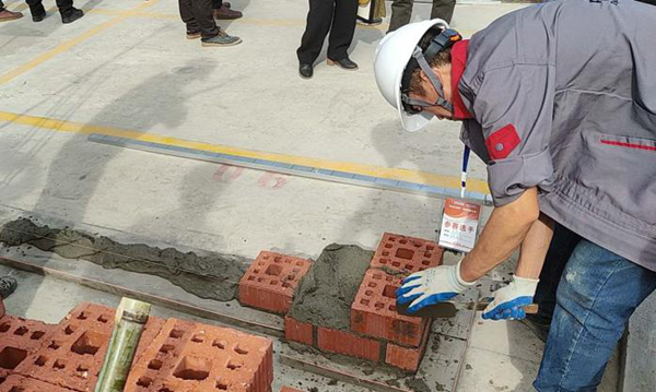 參賽代表需在1.5小時內(nèi)完成長1.5米、高1.2米的帶預留洞口和馬牙槎的砌體,通過緊張、激烈的競賽,最終裁判通過垂直度、灰縫寬度、平整度等現(xiàn)場實測實量和砌體構造及觀感質(zhì)量等綜合評分,我公司代表隊獲得了第二名的好成績。